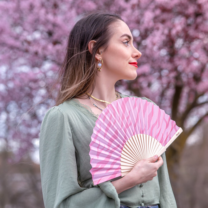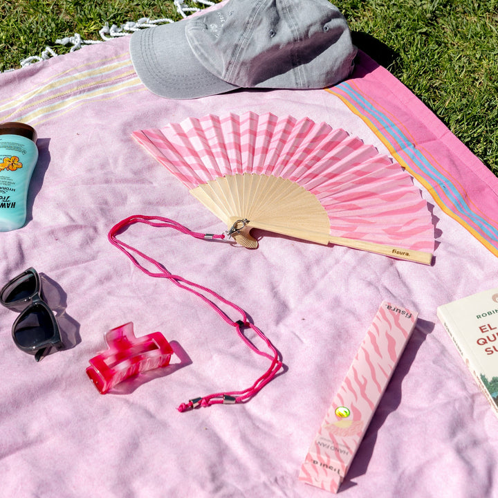 Su color rosa le dará a tus outfits veraniegos un toque de color, delicadeza y diversión que llamará la atención de todos. Además, incluye un práctico colgador para que puedas tenerlo siempre a mano y que no se te pierda ni se te olvide. ¡Cuélgatelo y olvídate de rebuscarlo en tu bolso o mochila 🎒 cuando necesites abanicarte!