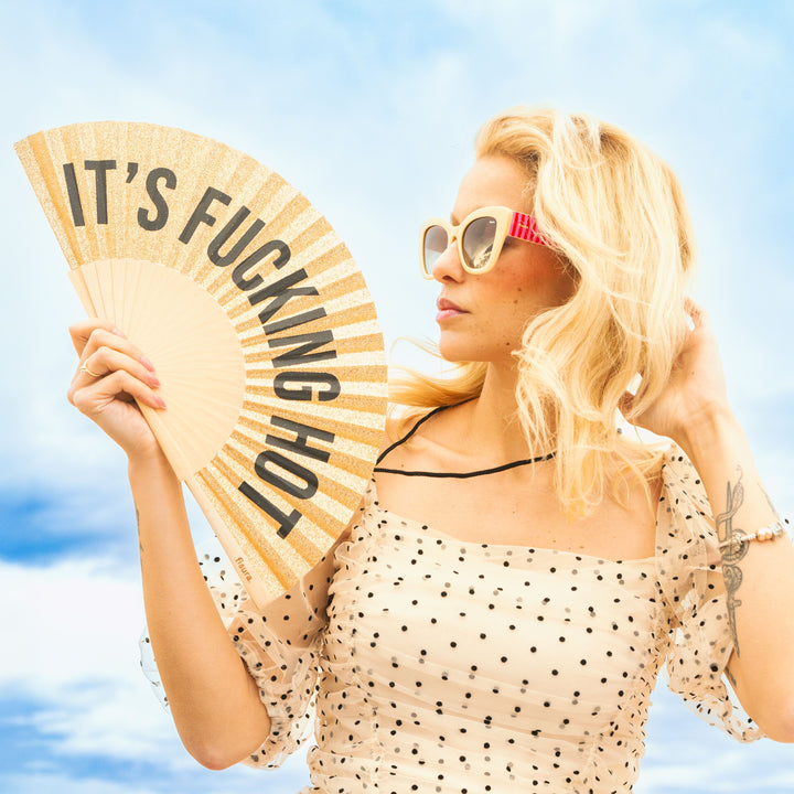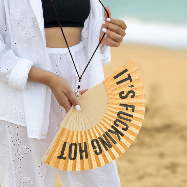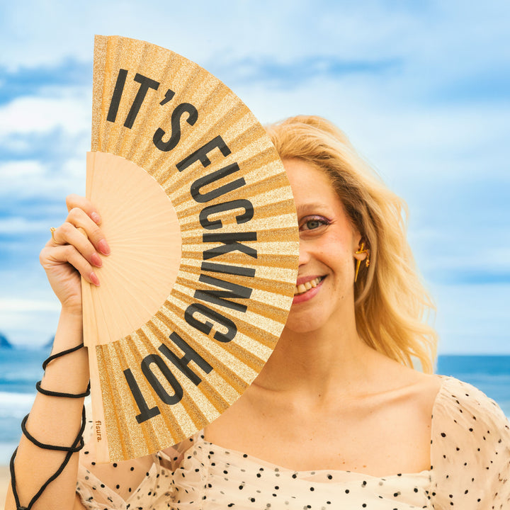Abanico "It´s Fucking hot" Glitter Dorado