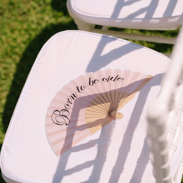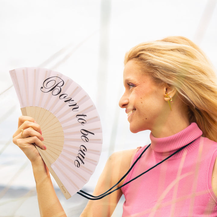 El abanico mini tiene un tamaño de 19 cm x 3 cm cuando está cerrado por lo que es ideal para llevarlo en cualquier bolso pequeño👝, riñonera, mochila o bolsillo del traje. Y, con su mensaje “born to be cute” 🎀 dejarás claro que derrochas simpatía y que eres adorable.