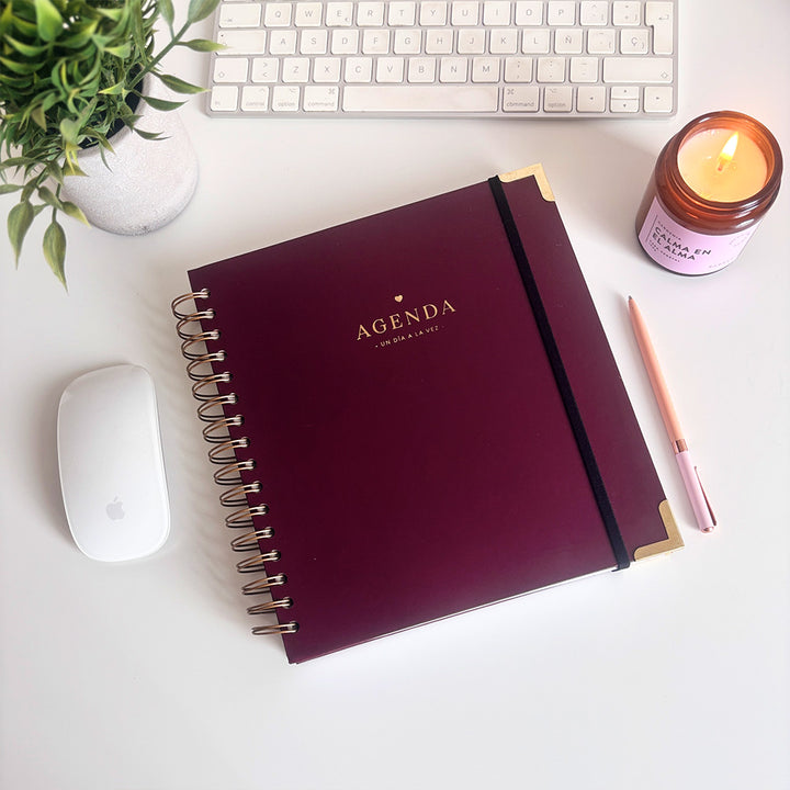Esta agenda se convertirá en tu compañera ideal para organizar y transformar tu día a día. Te ofrece una página completa por día, para que puedas organizar tus tareas, objetivos y prioridades con total claridad. Su diseño te permitirá mantener la motivación y el enfoque en lo que es realmente importante para ti.
