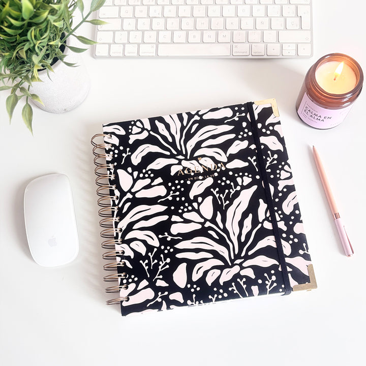 Esta agenda se convertirá en tu compañera ideal para organizar y transformar tu día a día. Te ofrece una página completa por día, para que puedas organizar tus tareas, objetivos y prioridades con total claridad. Su diseño te permitirá mantener la motivación y el enfoque en lo que es realmente importante para ti.