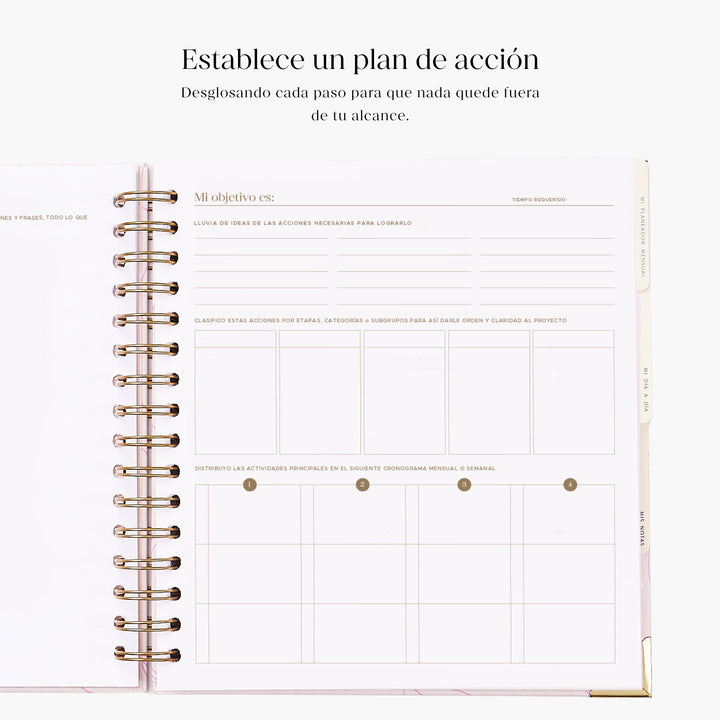 - Página de objetivos para definir lo más importante.
