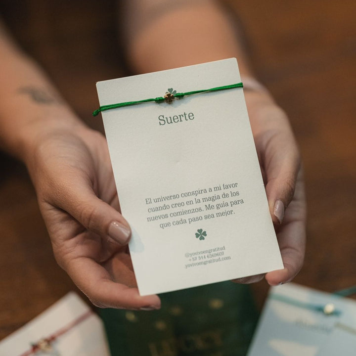 🍀Suerte – Trébol con hilo verde, para abrir caminos y oportunidades.