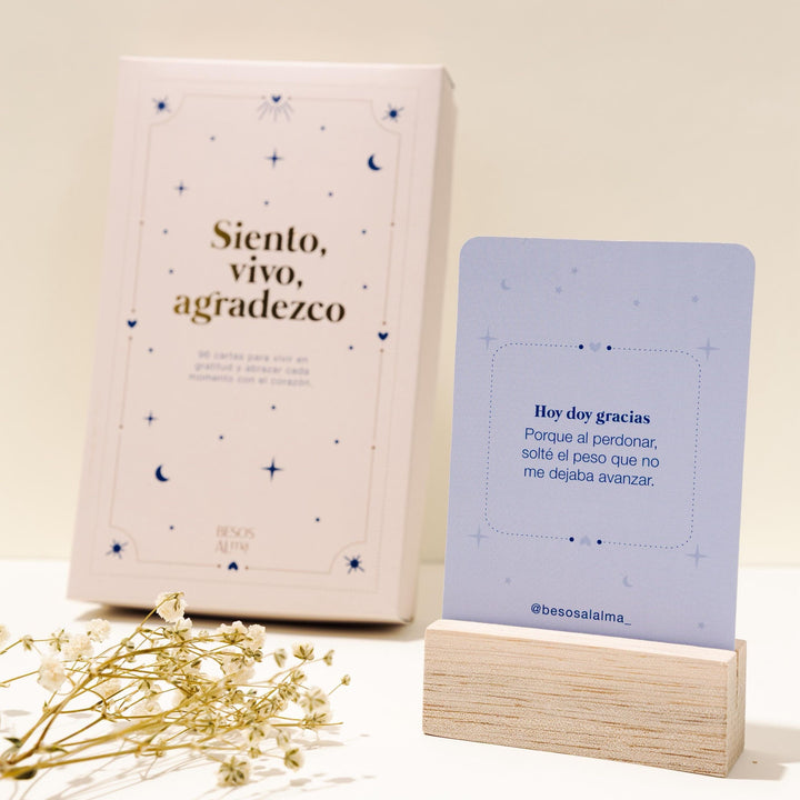 Incluye una base de madera para poner tu carta del día ❤️🩹 Perfecto para regalar (o regalarte) y empezar a vivir con más intención.