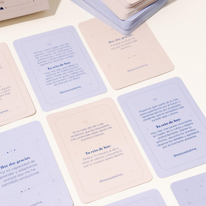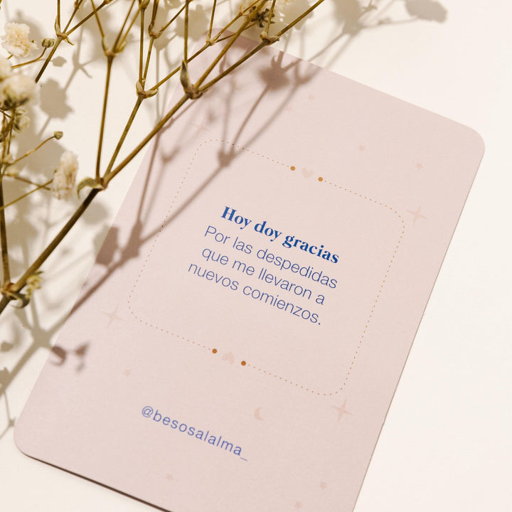 Este oráculo es una invitación a volver a ti y recordar todas las cosas lindas que te rodean ✨ Contiene 96 cartas con frases y retos de gratitud para reconectar con tu presente, encontrar belleza en lo cotidiano y transformar tu forma de mirar la vida.
