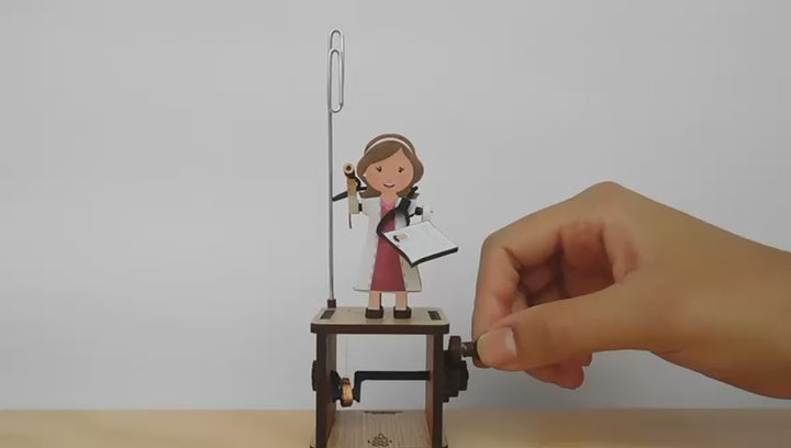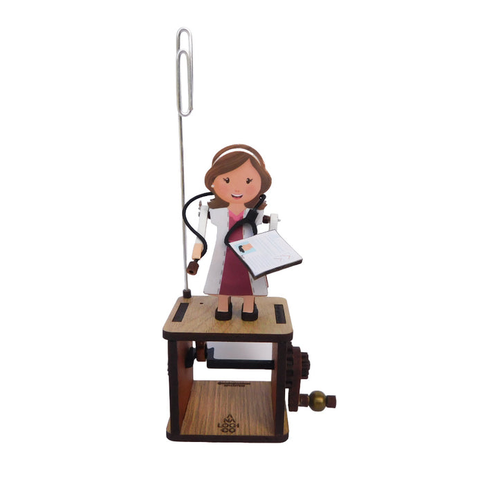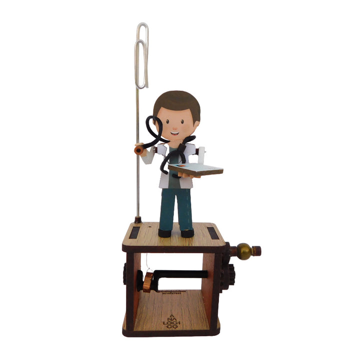 Organiza tus ideas con corazón gracias a este porta notas artesanal en madera, acompañado de un personaje médico en movimiento que simula escuchar los latidos con su instrumento. Una pieza que late con creatividad y cuidado en cada detalle.