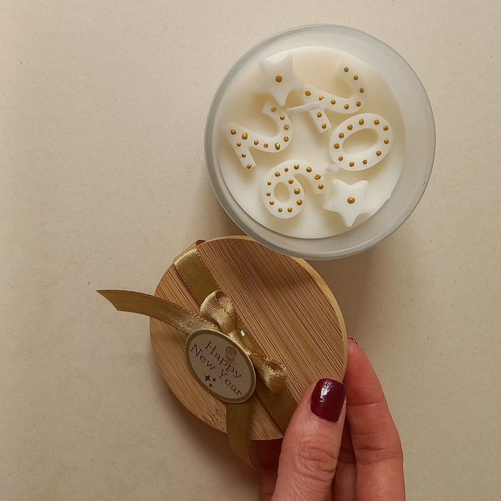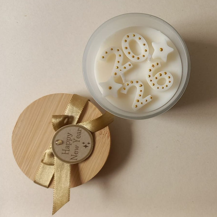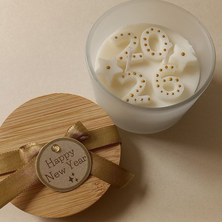 Recibe el 2026 con intención, magia y propósito. Esta vela ha sido diseñada para acompañarte en tu ritual de inicio de año: en la parte superior encontrarás los números 2026 delicadamente trabajados, rodeados de detalles en dorado que aportan brillo, celebración y energía renovada. Su tapa de madera añade un toque natural y elegante, ideal para conservar su aroma y mantenerla siempre lista para tu momento especial.